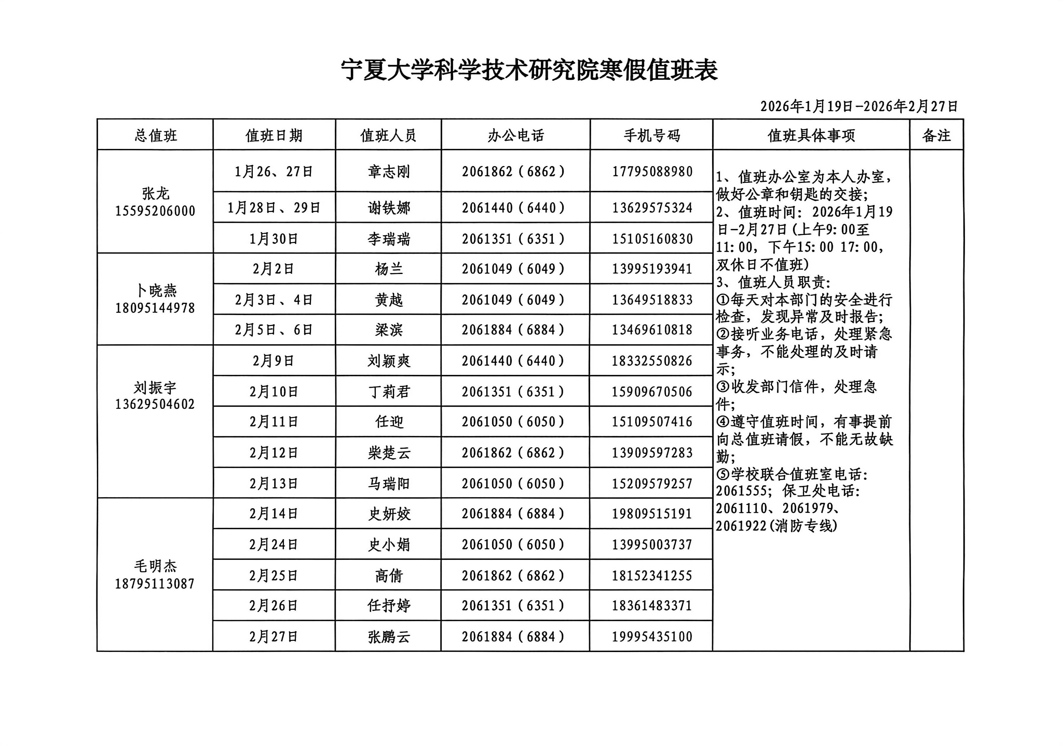 为做好2026年寒假期间科研服务保障工作,根据学校《关于放寒假的通知》(宁大办发〔2026〕2号),结合科学技术研究院工作实际,现将科学技术研究院假期服务工作具体安排通知如下。